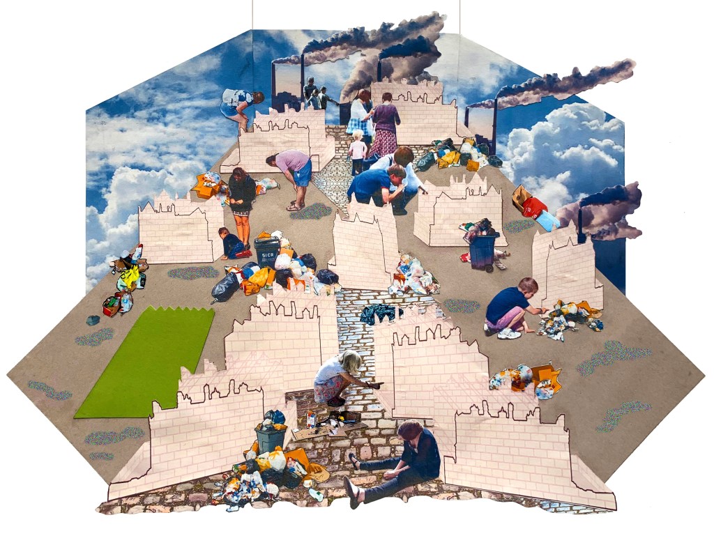 I imagined a miniature park style installation, based upon and representative of my local area and it’s struggle with waste. With terraces and streets brought inside, being consumed by an abundance of bins, rubbish piles and scattered litter. There would have been a projection of a polluted sky in the background.